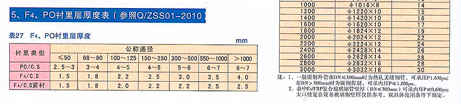 2)内衬外包厚度、钢管规格及使用范围同管道,见表25、27、28。